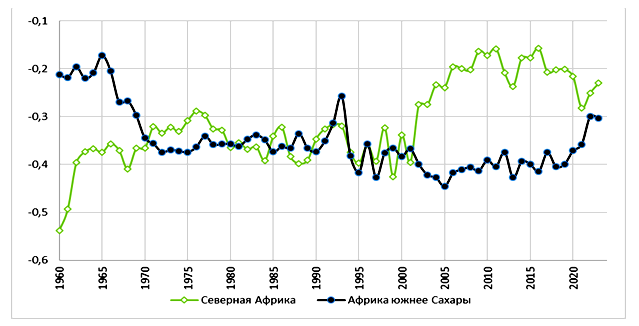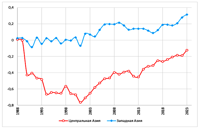 отрицательной корреляции между усилением связности Мир-Системы и